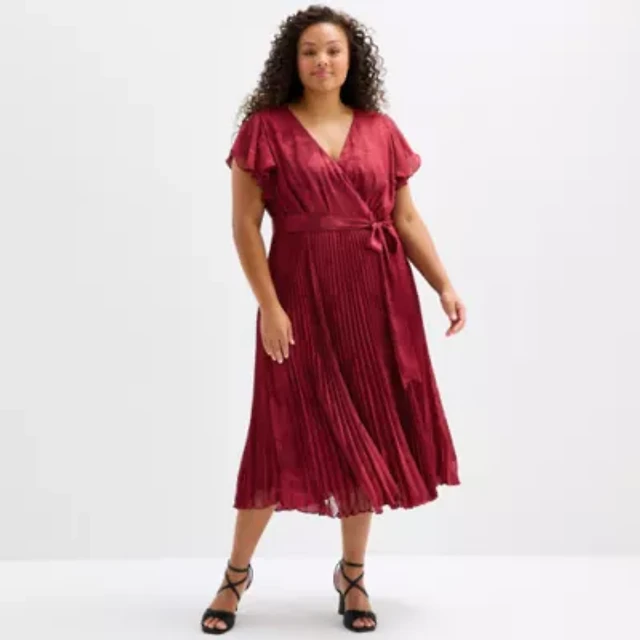 Melonie T Womens Plus Short Sleeve Midi Fit + Flare Dress