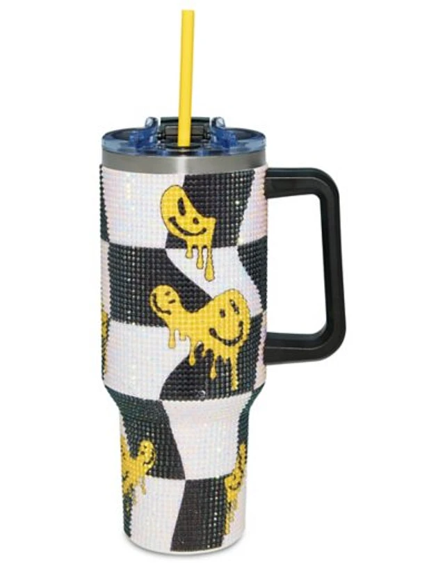 Melting Smiley Rhinestone Travel Tumbler with Straw - 40 oz.