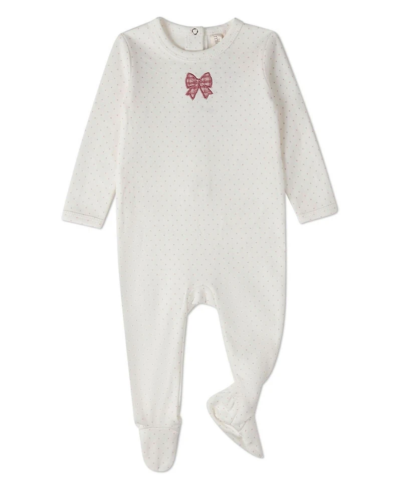 MeMoi Baby Girls "Put A Bow On It" 100% Cotton Embroidered Polka-Dot Footie