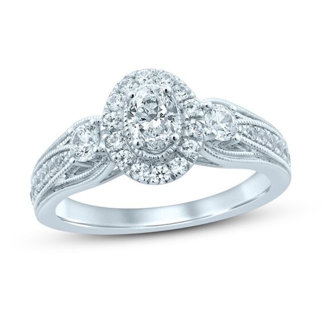 Memories Moments Magic Diamond Engagement Ring 1 ct tw Oval & Round 14K White Gold