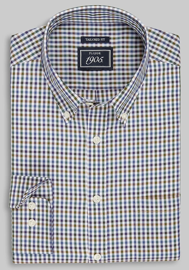 Men's 1905 Collection Tailored Fit Small Check Comfort Stretch Casual Shirt at Jos. A. Bank, Green/Olive,