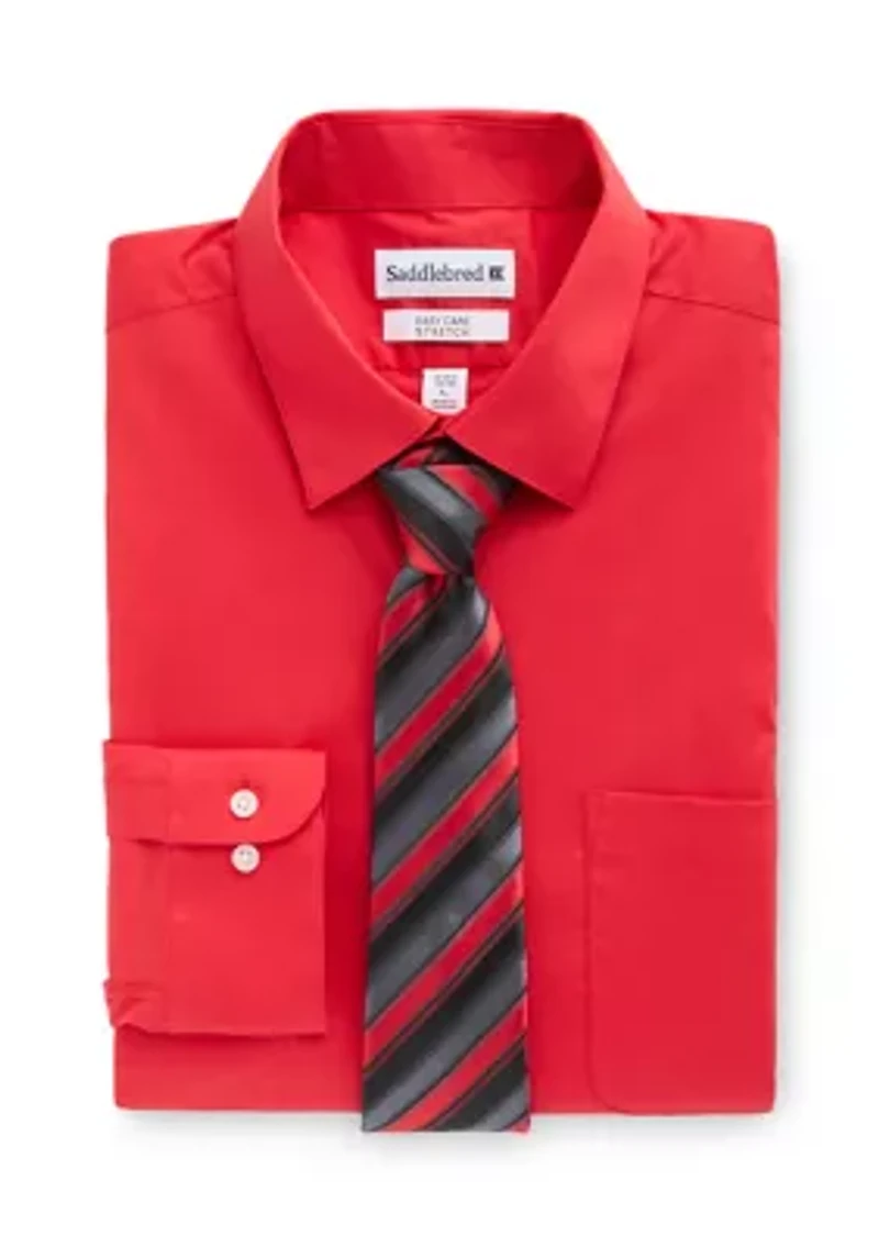 Dress to impress with this 2-piece set from Saddlebred® featuring a solid red shirt paired with a striped tie. 2-piece set Button closure Spread collar Long sleeves Imported Belk Exclusive Material & Care Cotton, polyester, spandex Machine washable
