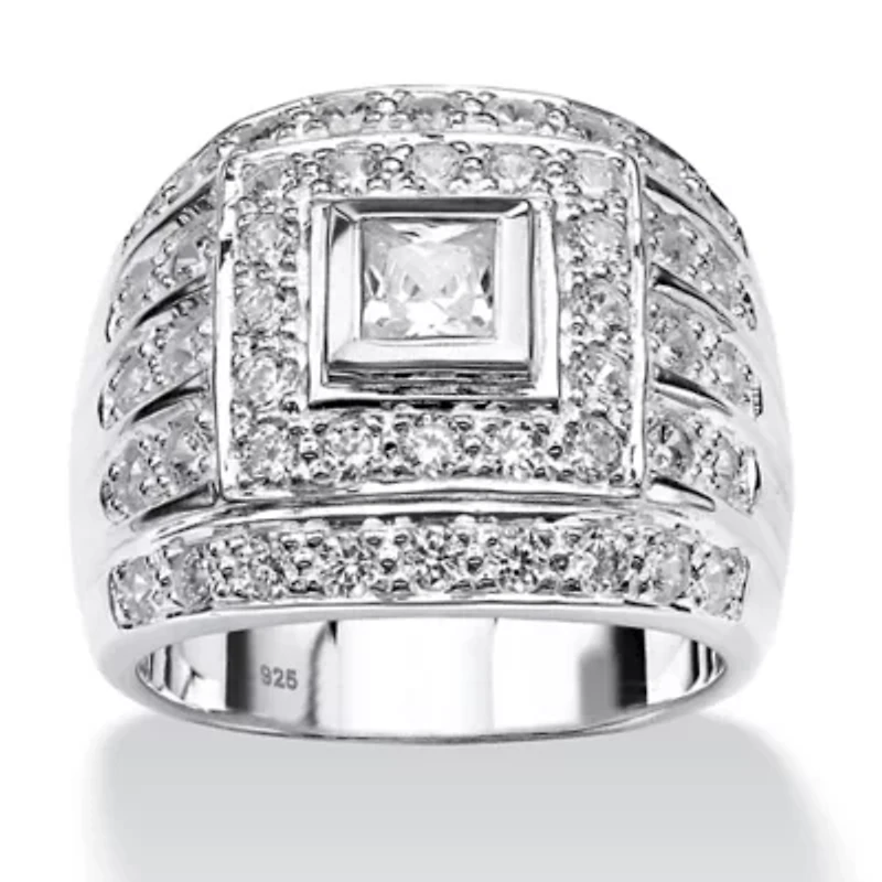 Men's 2.89 TCW Square-Cut Cubic Zirconia Ring .925 Sterling Silver