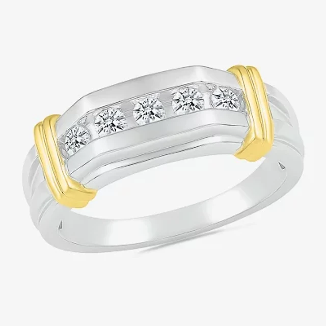 Mens 3MM 1/ CT. T.W. Natural White Diamond 10K Two Tone Gold Wedding Band
