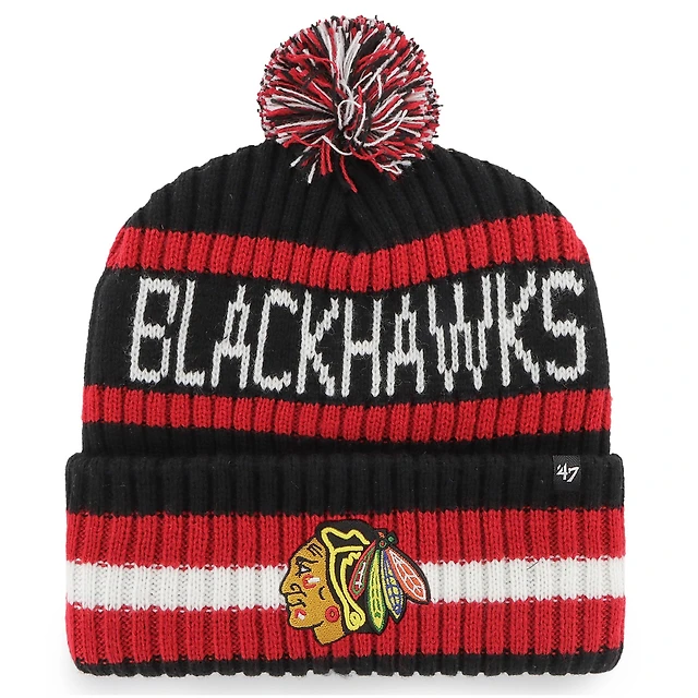Men's '47 Black Chicago Blackhawks Bering Cuffed Knit Hat with Pom