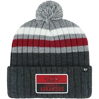 Men's '47 Charcoal Arkansas Razorbacks Stack Striped Cuffed Knit Hat with Pom