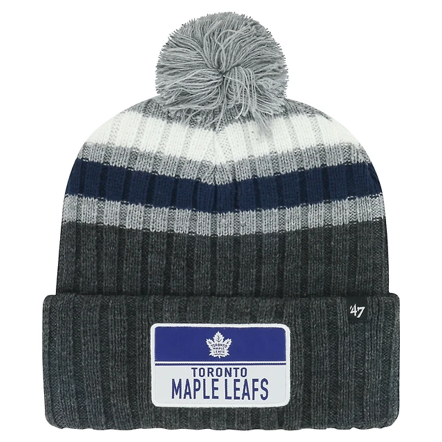 '47 Brand Men's Gray Toronto Maple Leafs Stack Patch Cuffed Knit Hat with Pom
