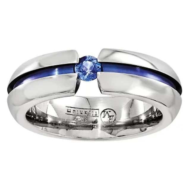 Mens 6MM Genuine Blue Sapphire Titanium Wedding Band