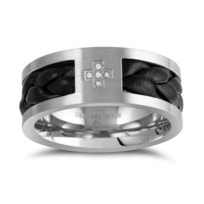 Mens 8MM 1/10 CT. T.W. Natural White Diamond Stainless Steel Wedding Band
