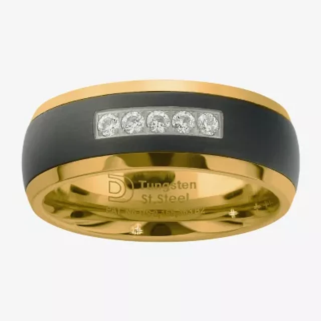 Mens 8MM 1/4 CT. T.W. Natural White Diamond Stainless Steel Tungsten Wedding Band