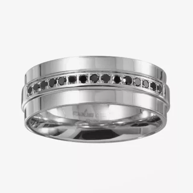 Mens 8MM 1/4 CT. T.W. Natural White Diamond Stainless Steel Tungsten Wedding Band