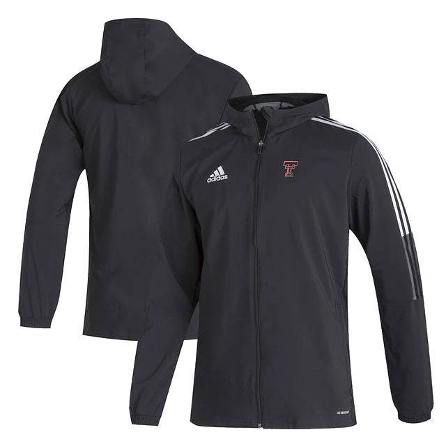 Men's adidas Black Texas Tech Red Raiders Tiro 21 AEROREADY Full-Zip Hoodie Windbreaker Jacket