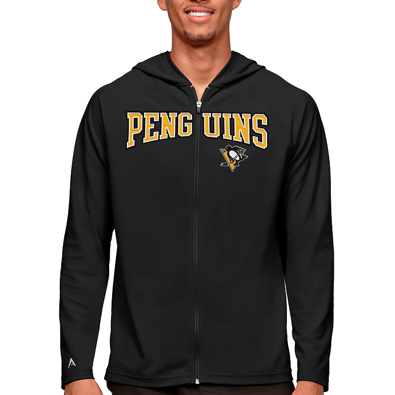 Men's Antigua Black Pittsburgh Penguins Legacy Full-Zip Hoodie