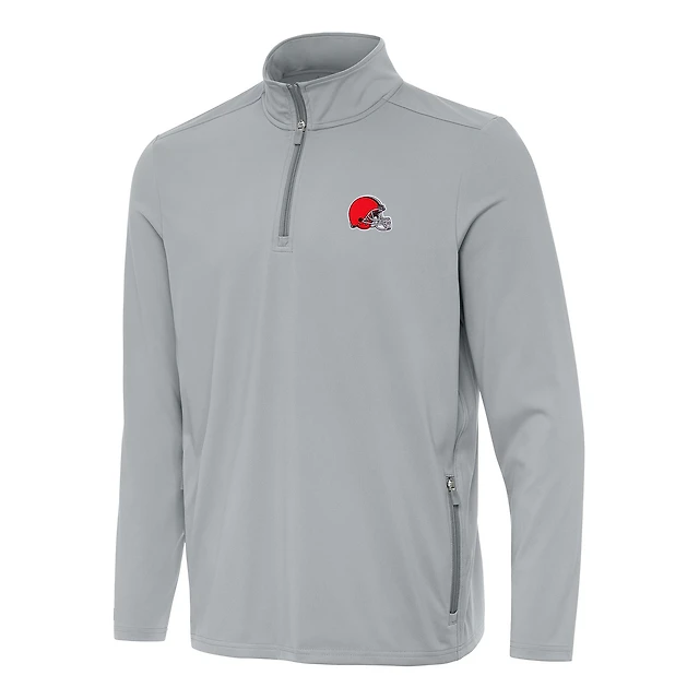Men's Antigua Gray Cleveland Browns Perilous Quarter-Zip Pullover Top