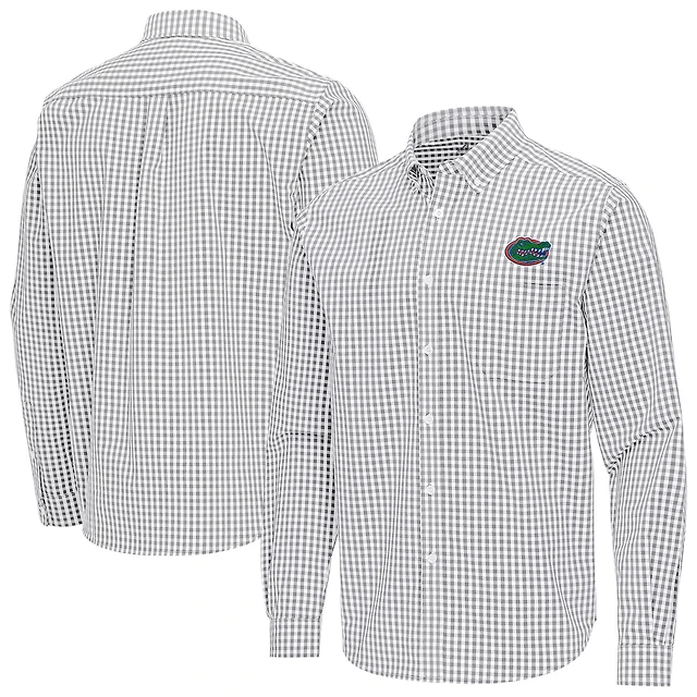 Men's Antigua Gray Florida Gators Ellis Woven Tri-Blend Long Sleeve Button-Down Shirt