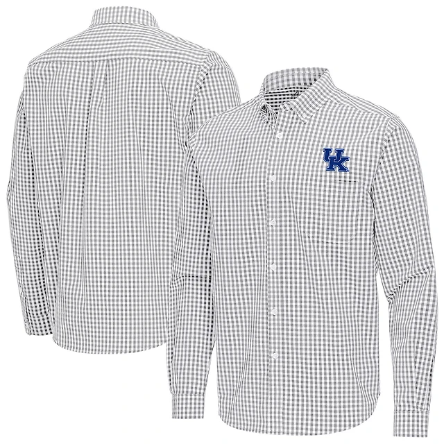 Men's Antigua Gray Kentucky Wildcats Ellis Woven Tri-Blend Long Sleeve Button-Down Shirt