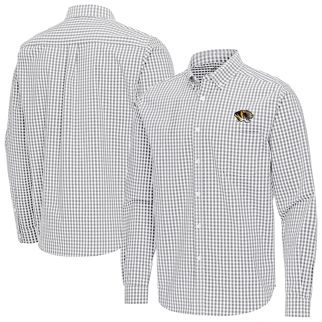 Men's Antigua Gray Missouri Tigers Ellis Woven Tri-Blend Long Sleeve Button-Down Shirt