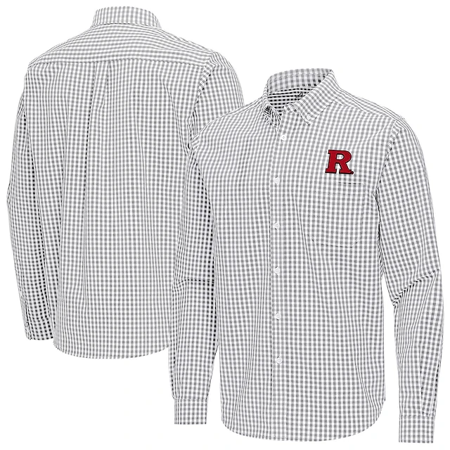 Men's Antigua Gray Rutgers Scarlet Knights Ellis Woven Tri-Blend Long Sleeve Button-Down Shirt