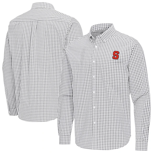Men's Antigua Gray Syracuse Orange Ellis Woven Tri-Blend Long Sleeve Button-Down Shirt