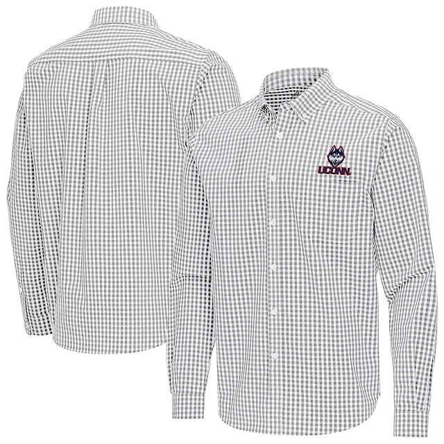 Men's Antigua Gray UConn Huskies Ellis Woven Tri-Blend Long Sleeve Button-Down Shirt