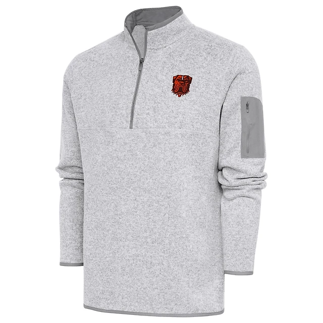 Men's Antigua Heather Gray Cleveland Browns Fortune Quarter-Zip Pullover Jacket