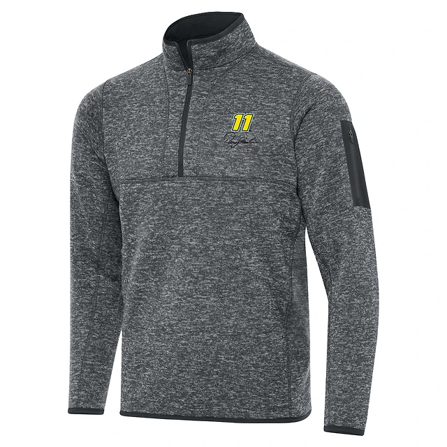 Women's Antigua Heather Black Denny Hamlin Crush Quarter-Zip Pullover Top