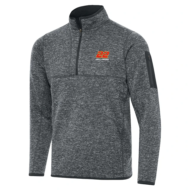 Men's Antigua Heather Black Joey Logano Spikes Quarter-Zip Pullover Hoodie