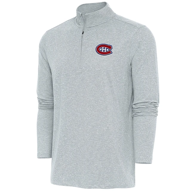 Men's Antigua Heather Gray Montreal Canadiens Hunk Quarter-Zip Pullover Top