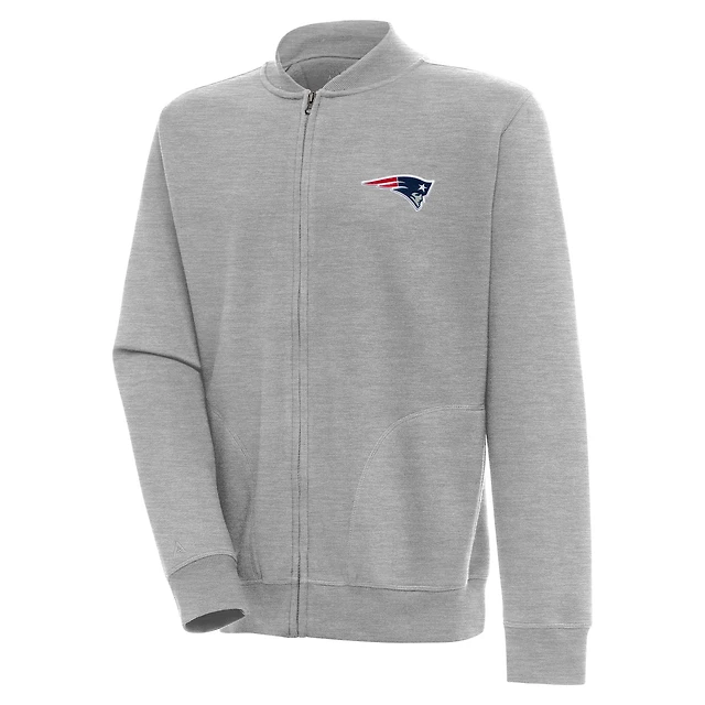 Men's Antigua Heather Gray New England Patriots Victory Full-Zip Jacket