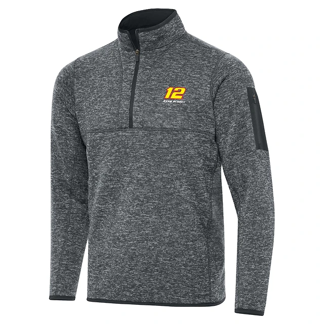 Men's Antigua Heather Black Ryan Blaney Spikes Quarter-Zip Pullover Hoodie