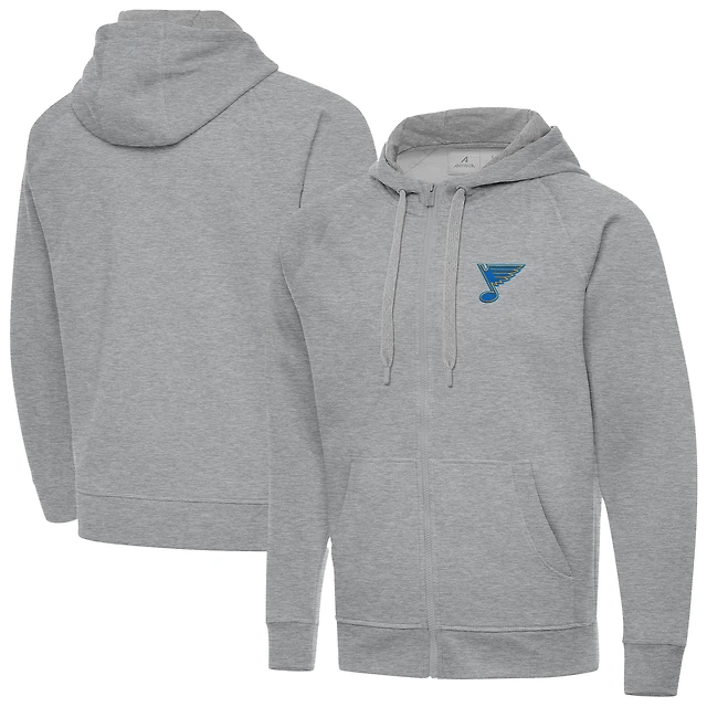 Men's Antigua Heather Gray St. Louis Blues Victory Full-Zip Hoodie