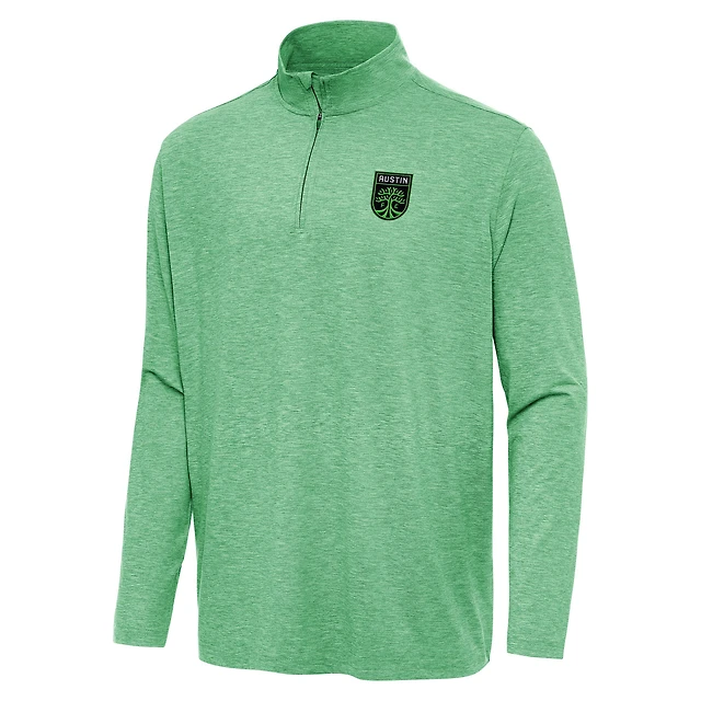 Men's Antigua Heather Green Austin FC Hunk Quarter-Zip Pullover Top