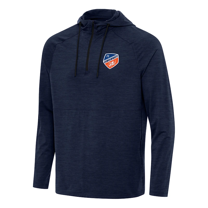 Men's Antigua Heather Navy FC Cincinnati Spikes Raglan Quarter-Zip Hoodie in Franklin, TN