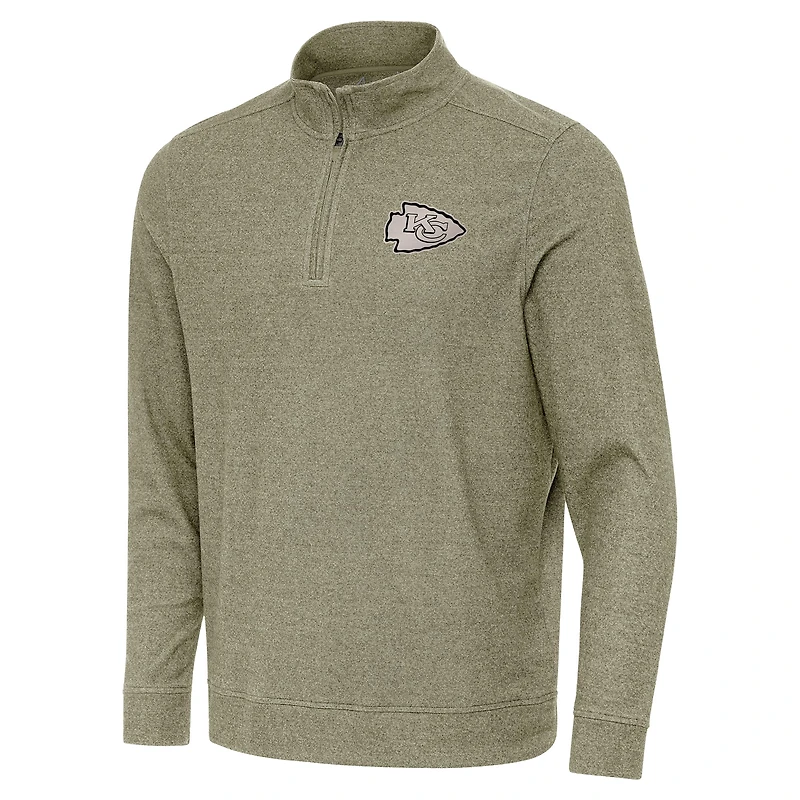 Men's Antigua Heather Olive Kansas City Chiefs Subtle Quarter-Zip TopMen's Antigua Heather Olive Kansas City Chiefs Subtle Quarter-Zip Top