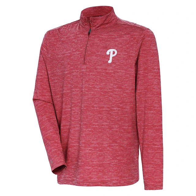 Men's Antigua Heather Red Philadelphia Phillies Quarter-Zip Top