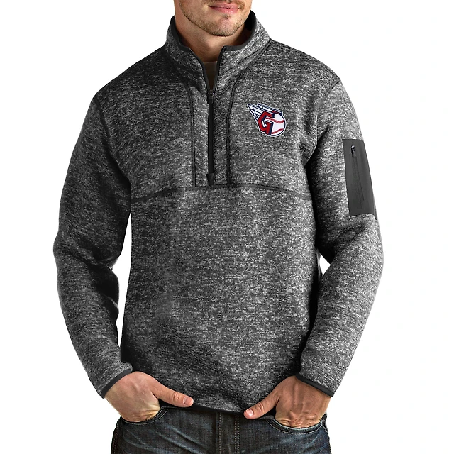 Men's Antigua Heathered Charcoal Cleveland Guardians Fortune Quarter-Zip Pullover Jacket