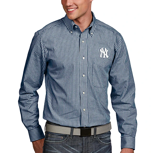 Men's Antigua Navy New York Yankees Associate Woven Big & Tall Long Sleeve Button-Down Shirt