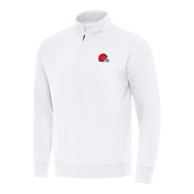 Men's Antigua White Cleveland Browns Team Logo Tribute Quarter-Zip Pullover Top