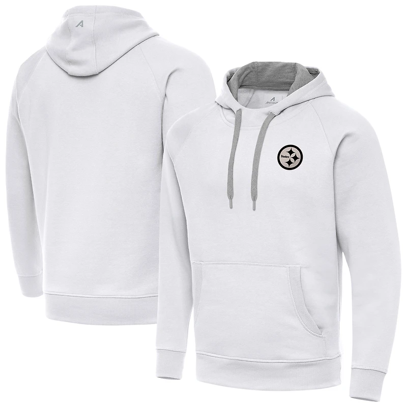Men's Antigua White Pittsburgh Steelers Brushed Carbon Victory Pullover Hoodie