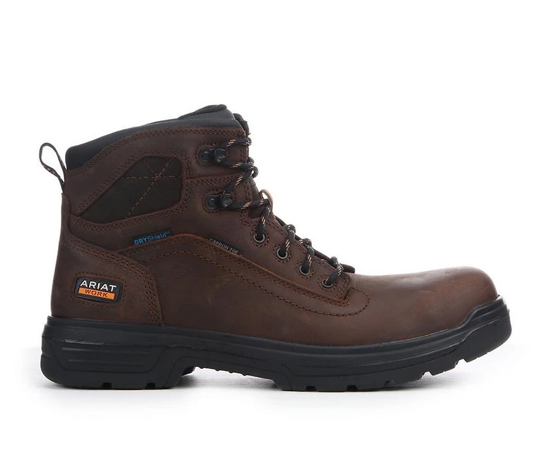 Men's Ariat Turbo 6" Carbon Toe H20 CSA Work Boots Power through your workday with the Men's Ariat Turbo 6" Carbon Toe H2O CSA Work Boots, designed to keep you dry, safe, and comfortable no matter the job. With a waterproof DRYShield™ construction, a carbon safety toe, and slip-resistant outsole, these boots handle the tough stuff while providing all-day support. Engineered with ATS® technology and Energy Max™ insoles, they’re the ultimate combination of comfort and durability for every worksite adventure!