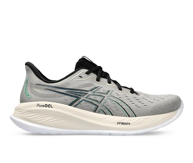 Men's ASICS Gel Cumulus 26 Running Shoes Experience a soft feel underfoot with the GEL-CUMULUS® 26 shoe. This neutral everyday trainer is a versatile choice for various running workouts and distances. FF BLAST™ PLUS cushioning and PureGEL® technology are strategically positioned in the midsole. These materials help create softer landings and a more energized toe-off during your training.