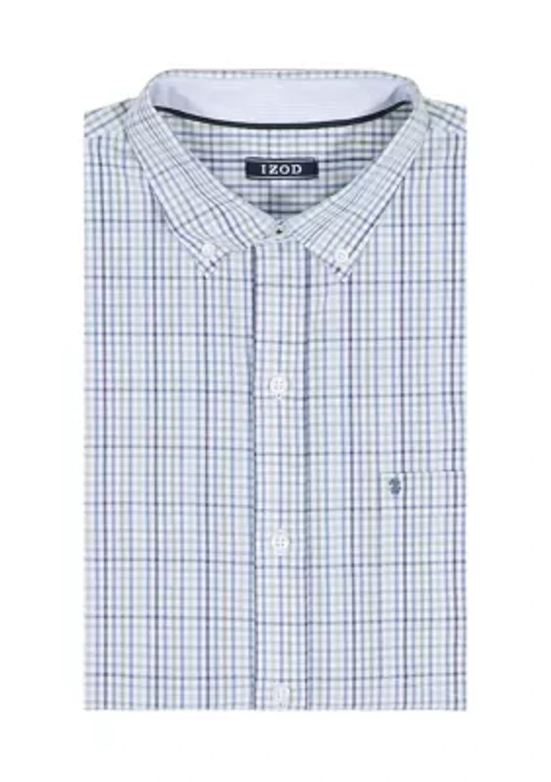 Product Description: With a classic fit and added stretch, this button-up shirt from IZOD is an everyday essential. The cotton-blend is machine washable for easy care and since it’s made from recycled materials, it’s also easy on our planet. Plus, it's wrinkle resistant so you can leave your iron unplugged. About this Item 72% cotton, 25% recycled polyester, 3% spandex Button-down collar Built-in stretch Wrinkle-free Recycled materials Machine washable Button closure Button-down collar Long button cuff sleeves Plaid pattern Imported Material & Care Cotton, polyester, spandex Machine washable