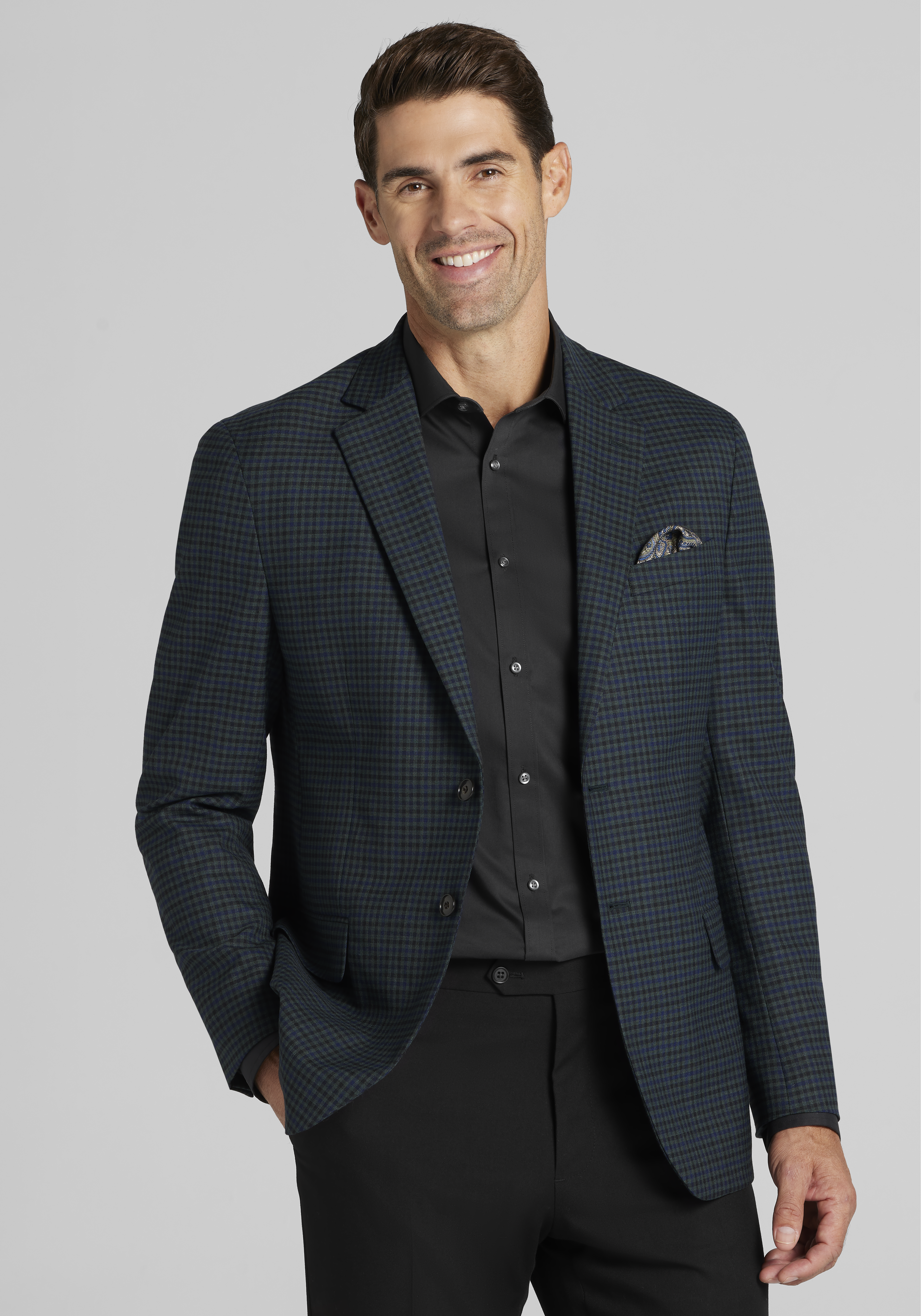 Men's Big & Tall Jos. A. Bank Comfort Stretch Tailored Fit Windowpane Sportcoat at Jos. A. Bank, Blue/Green/Sage