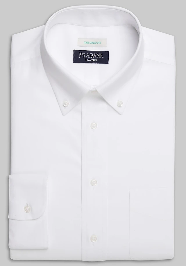 Men's Traveler® Collection Tailored Fit Button-Down Collar Solid Dress Shirt at Jos. A. Bank, Cream/White