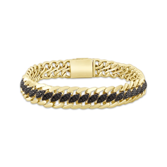 Men's Black Diamond Oval Center Curb Link Bracelet 6 ct tw 10K Yellow Gold 8.5
