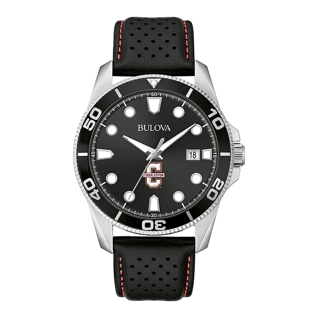 Men's Bulova Black Charleston Cougars Sport Leather Strap Watch