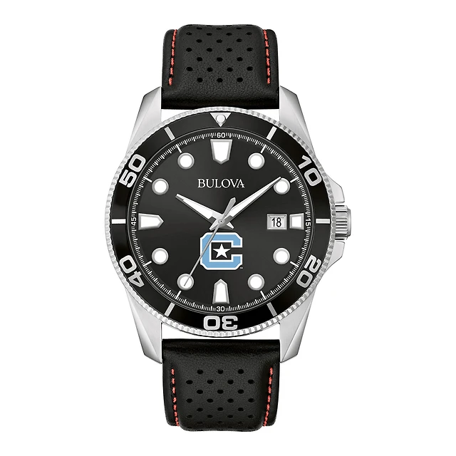 Men's Bulova Black Citadel Bulldogs Corporate Collection Leather Strap Watch