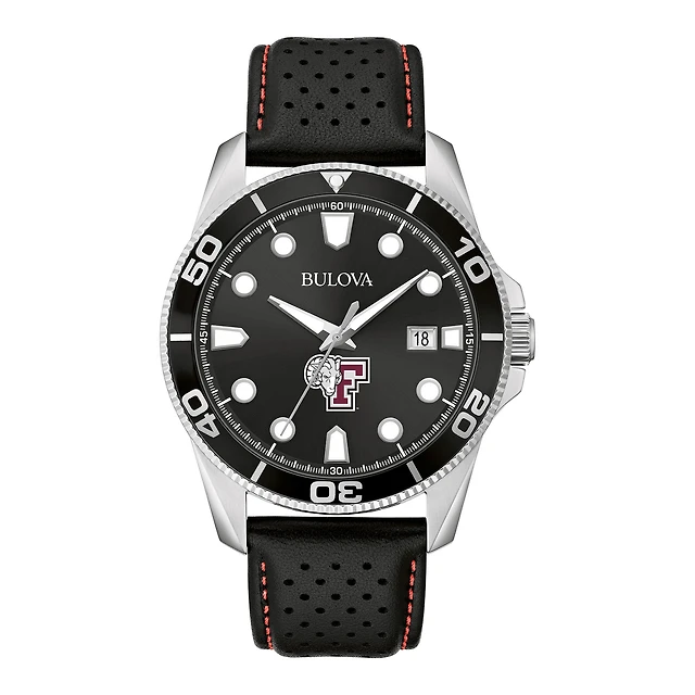 Men's Bulova Black Fordham Rams Sport Leather Strap Watch