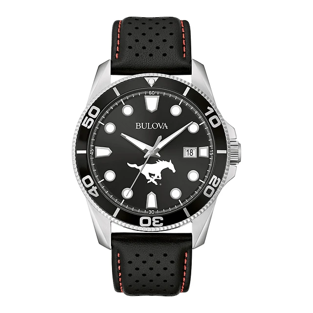 Men's Bulova Black SMU Mustangs Corporate Collection Leather Strap Watch