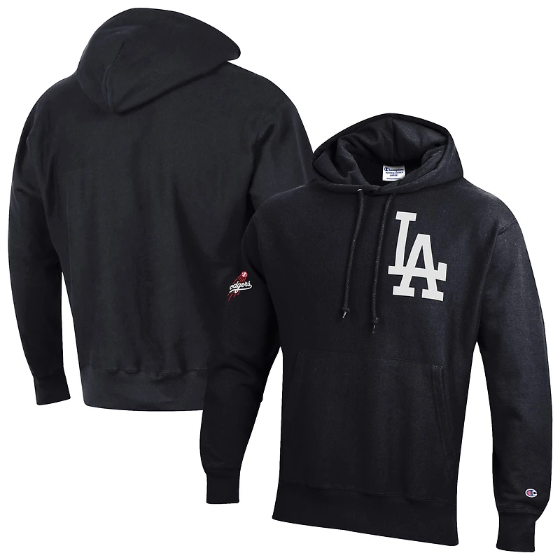 Men's Champion Black Los Angeles Dodgers Reverse Weave Chenille Hoodie